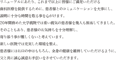 引き続き患者様に寄り添った、質の高い診療をご提供してまいりますので、今後とも当院をどうぞよろしくお願いいたします。